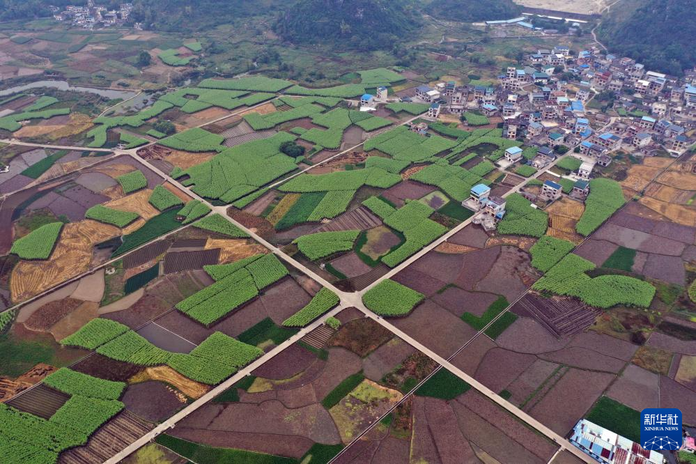 11月3日,在广西柳州市柳江区百朋镇里团村,村民在收果蔗(无人机照片)。
