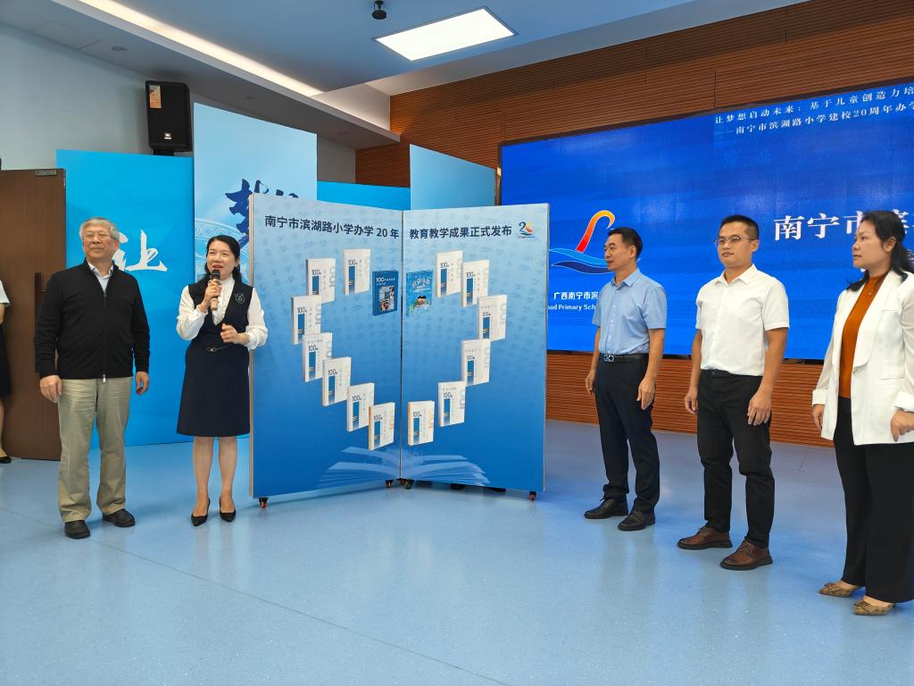在研讨会上,南宁市滨湖路小学发布了《让梦想启动未来:滨湖路小学办学20年教育教学成果集》。这套成果集将学校多年来课程教学改革实践的精髓进行分门别类的整理和提炼,以“10个100”的方式构建起10张“学校建设图谱”,对滨湖路小学20年教学探索历程进行回顾与总结。