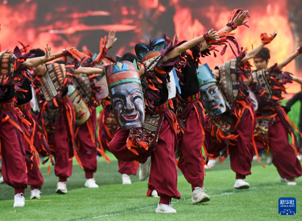 这是广西罗城仫佬族自治县成立40周年群众文艺展演现场(11月20日摄)。