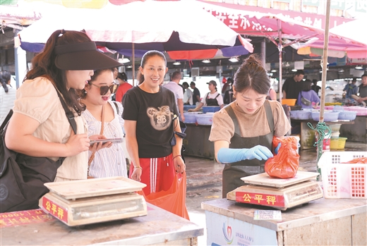 游客在涠洲岛南湾海鲜市场购买海鲜,公平秤让他们感到安心。 本文图片除署名外均为广西云-广西日报记者覃鸿图/摄