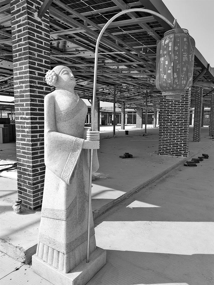 穿过城门,是面积约7000平方米的中心广场。在中心广场左右两侧的街区,工人正在加紧建设,部分石雕人像已安装摆放到位。与城楼正对着的是民俗舞台,舞台搭建工作已进入尾声,多名工人正在紧张有序地忙碌着。现场的项目负责人田志成说,铜州古城的民俗舞台长19米、宽11米,目前正在进行灯光音响和LED屏的安装,为即将在这里举行的北流市春晚做好准备。