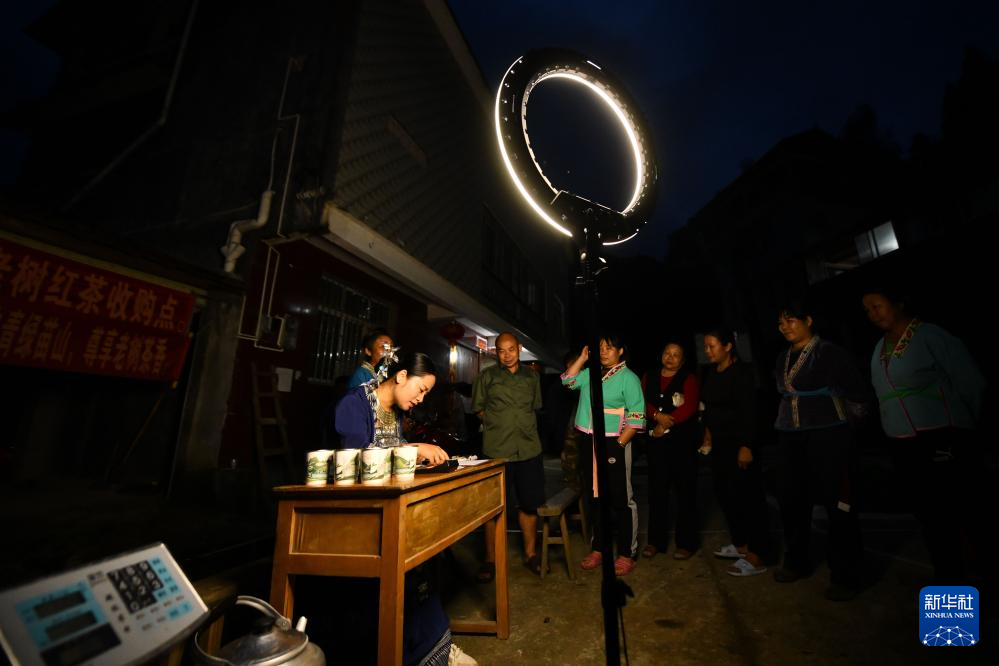 在广西融水苗族自治县香粉乡中坪村,贾宥凌(左一)在收茶叶(2024年4月20日摄)。“90后”苗族姑娘贾宥凌是广西柳州市融水苗族自治县香粉乡中坪村一名返乡创业青年。2019年,大学毕业在外工作四年后,贾宥凌回到家乡创业,成立了一家农业科技有限责任公司,打造“苗家凌子”绿色食品品牌,借助直播和短视频销售大苗山的农副产品、宣传家乡的民族文化和旅游资源。