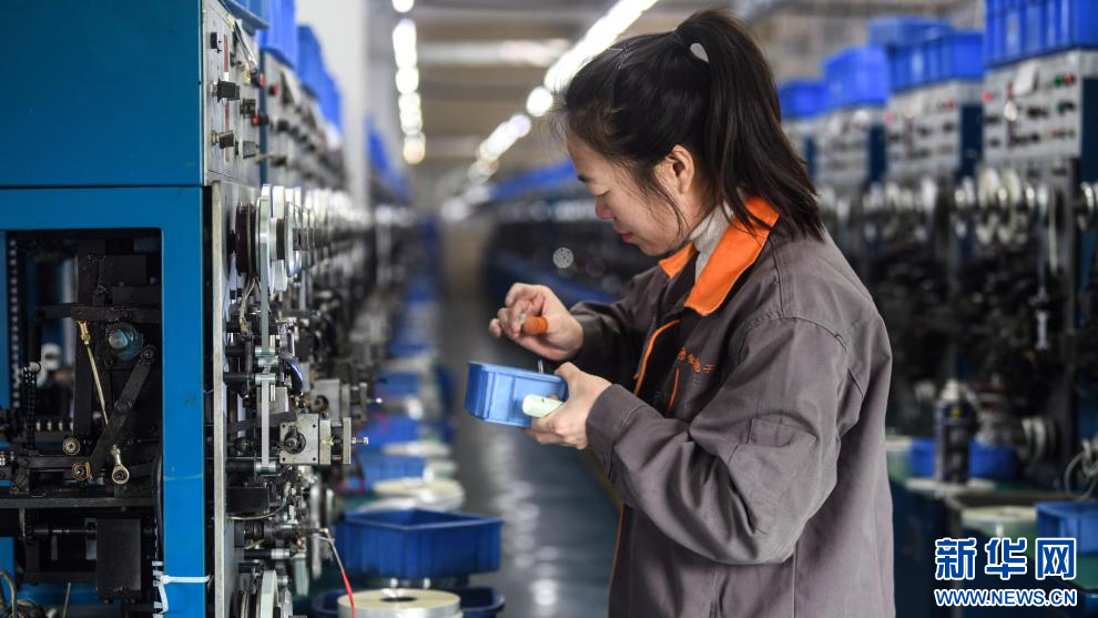 3月19日,在广西金佳电子有限公司的生产车间,一名工人在生产薄膜电容器。