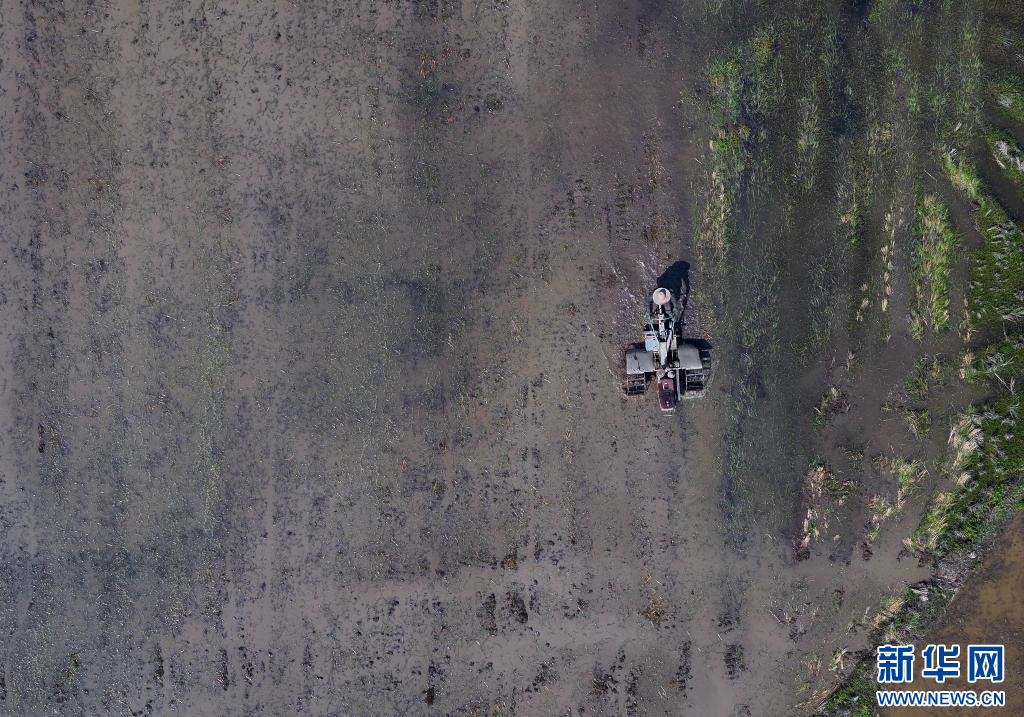 在广西融安县潭头乡新桂村,村民在田间劳作(3月21日摄,无人机照片)。