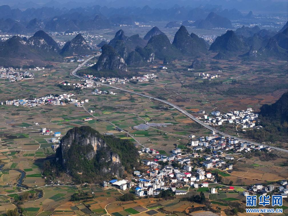 这是广西柳州市柳江区三都镇的乡村田园春景(无人机照片,3月20日摄)。