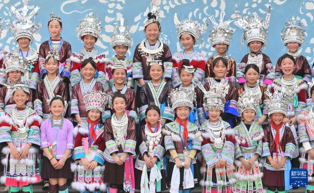 当日,广西柳州市融水苗族自治县杆洞乡中心小学举行石榴籽连籽·共庆“三月三”乡村少年宫民族风情文化展演活动,各族少年通过芦笙踩堂舞、山歌对唱、刺绣等丰富多彩的民俗文化活动,喜迎“三月三”传统节日。