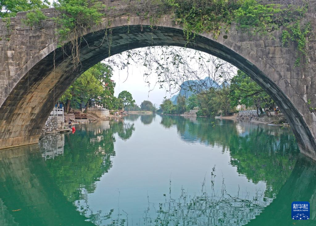 广西桂林市阳朔县遇龙河风光(2022年4月11日摄,无人机照片)。