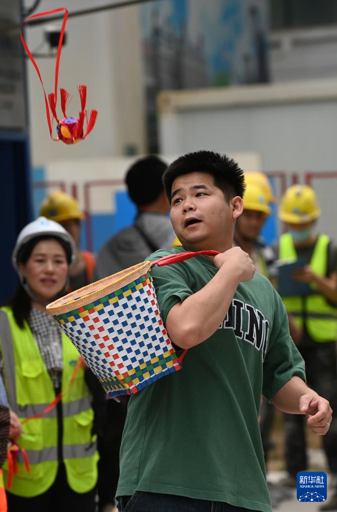 广西南宁:工地喜迎“三月三”-新华网