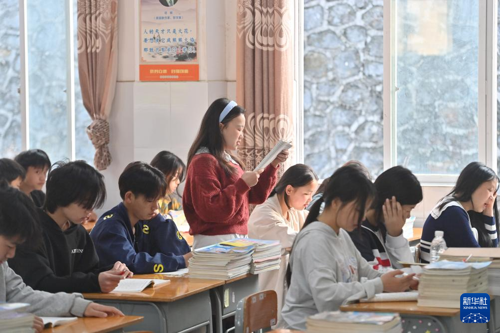 蒙秋艳在广西大化瑶族自治县板升乡初级中学上课(2025年4月2日摄)。