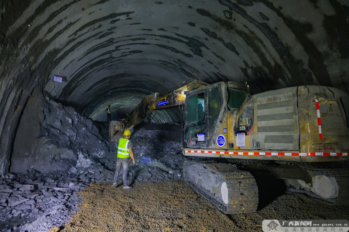 眼下,西部陆海新通道标志性工程——黄百铁路广西段建设正酣。7月4日,凌云隧道出口正洞掘进成功突破1000米大关,建设者们正全力冲刺贯通目标。