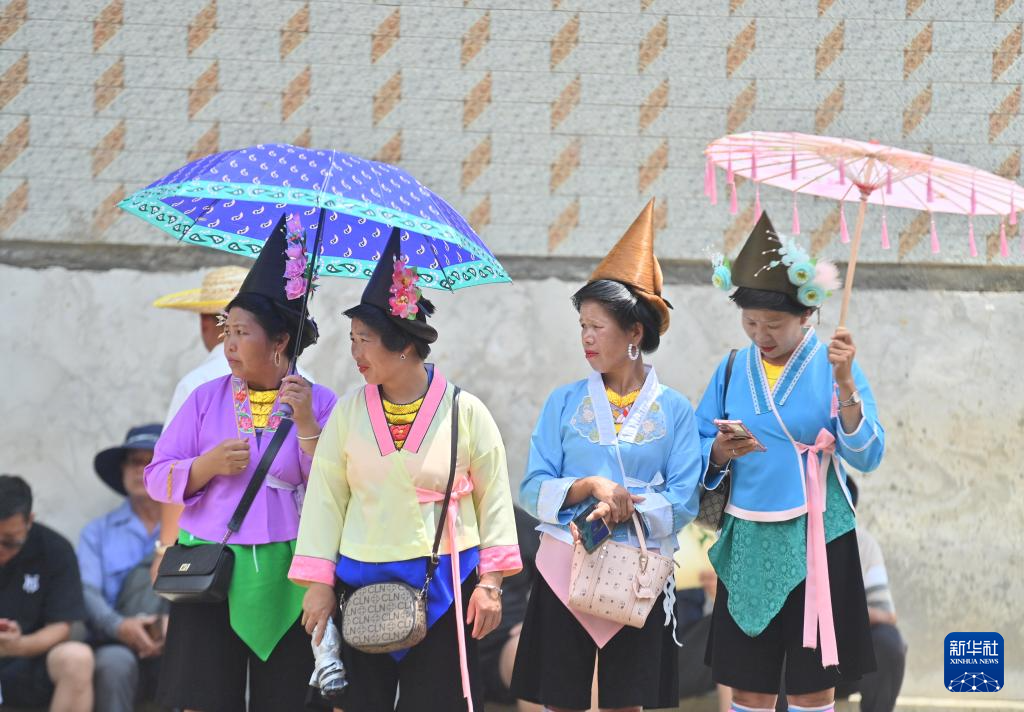 7月10日,在融水苗族自治县红水乡良双村,苗族妇女在观看闹鱼节活动。当地利用粤桂协作资金,不断提升闹鱼节活动基础设施条件,增强游客和村民的体验感。
