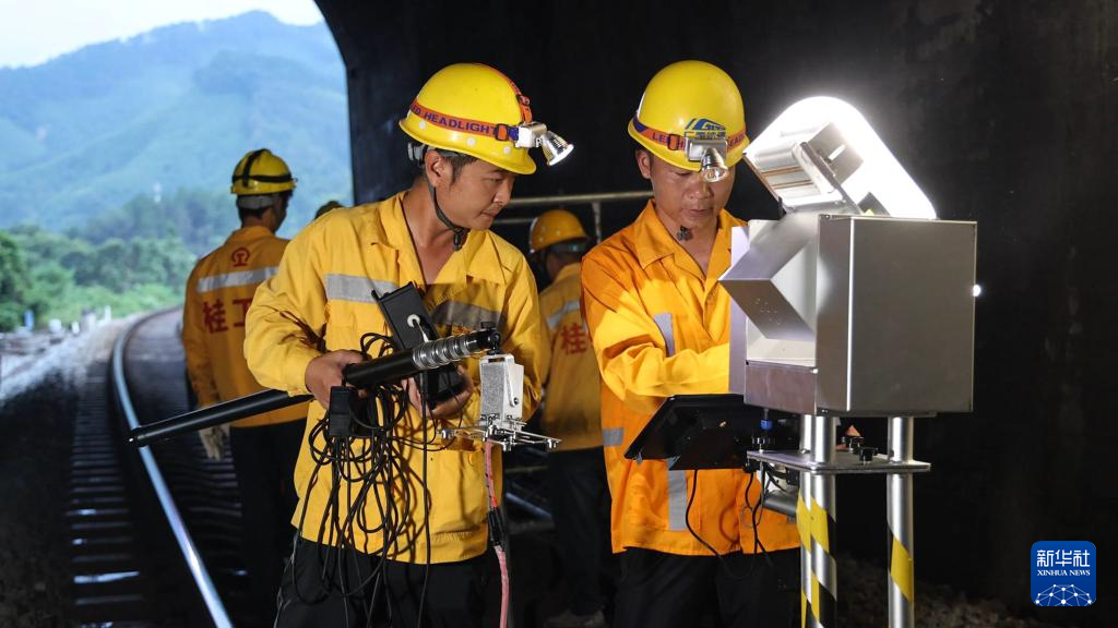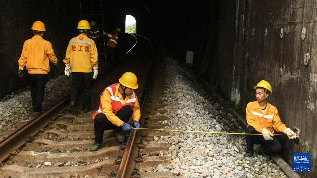 暑运期间,在湘桂铁路(广西段)沿线,国铁南宁局桂林工务段13名桥隧工人日夜穿梭于桂北的崇山峻岭间,对管段内的10座隧道、1075座涵洞进行多维度巡检、排查隐患,确保湘桂铁路线上暑运客货列车的安全运行。