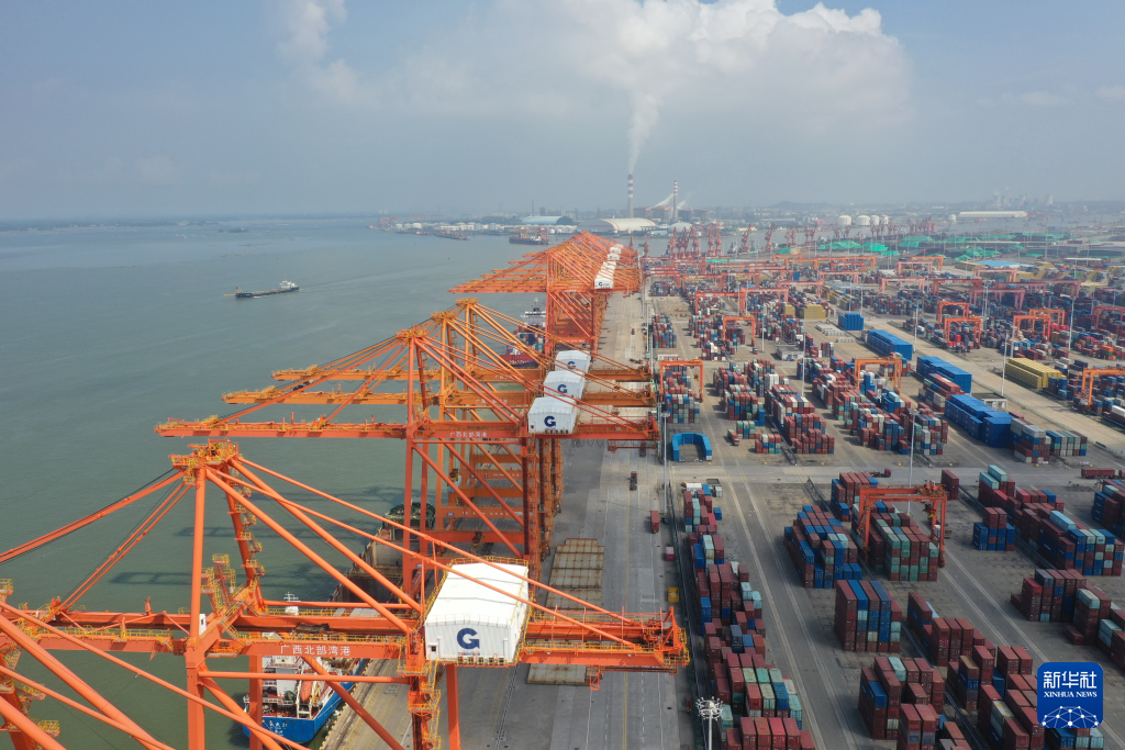 这是北部湾港钦州港区集装箱码头。(7月26日摄,无人机照片)