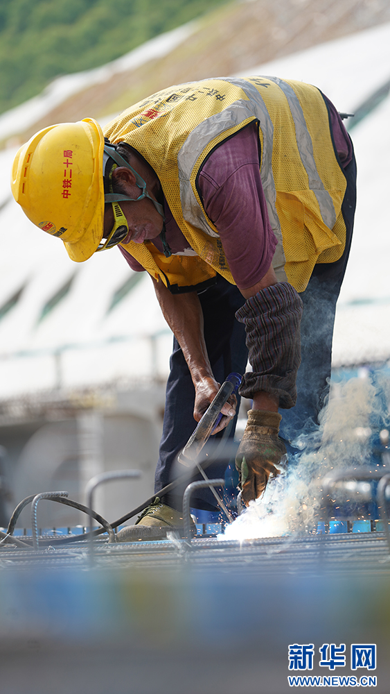中铁二十局的工人在鱼宜高速项目建设工地作业。