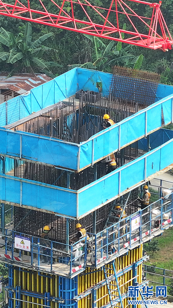 中铁二十局的工人在广西鱼宜高速项目建设工地作业。