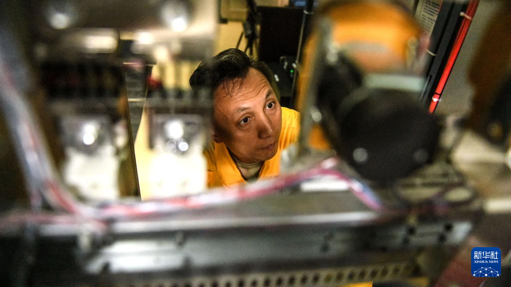 这是钦州电务段铁路通信工长刘泉在检查G网设备(8月6日摄)。
