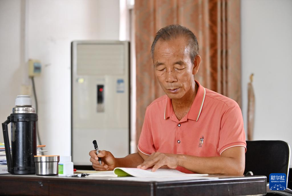 9月9日,在广西宾阳县王灵镇中心学校七新教学点,王英红老师在备课。
