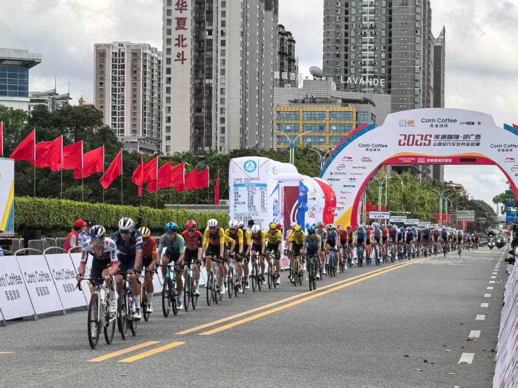 新华社南宁10月14日电(记者赵欢、王楚然)14日,2025环广西公路自行车世界巡回赛(以下简称“环广西世巡赛”)在广西防城港市北部湾海洋文化公园开赛,来自速的奥快步车队的保罗·马尼耶率先冲线,夺得揭幕战桂冠。