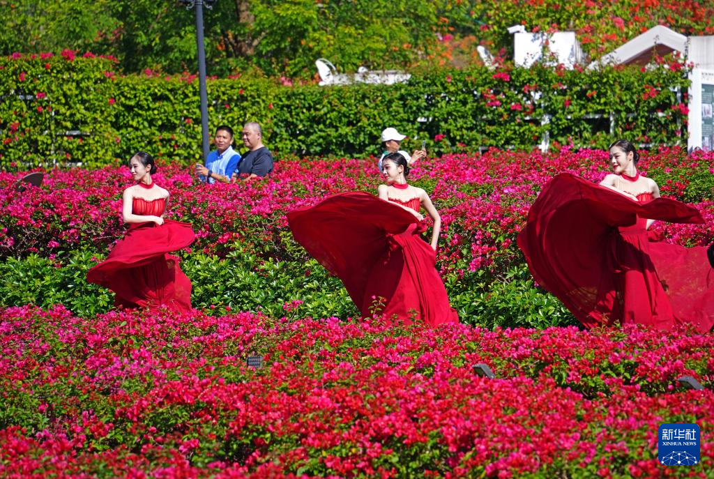 11月15日,演员在广西南宁市青秀山风景区三角梅花园演出。