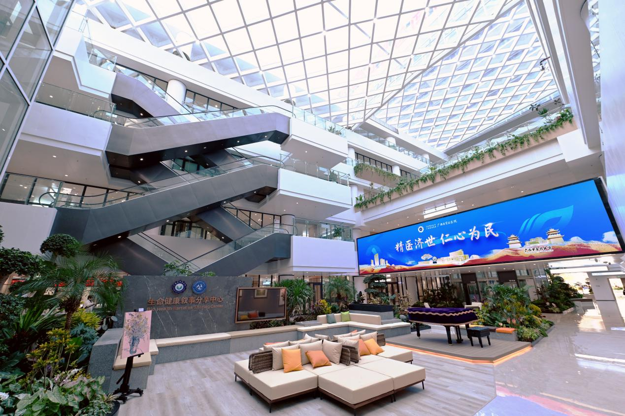 在环境建设方面,广西自贸区医院以“人文医院、花园医院”为设计导向,携手广西美术馆融入艺术之美,创新打造开放式门诊大厅,巧妙融合多元业态,通过约70000平方米的多层次景观体系,打造“花园式”疗愈空间。