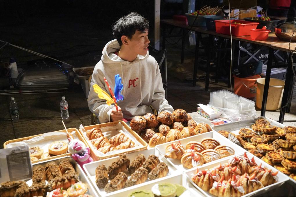 叶安和朋友在演唱会场外市集摆摊售卖甜品。