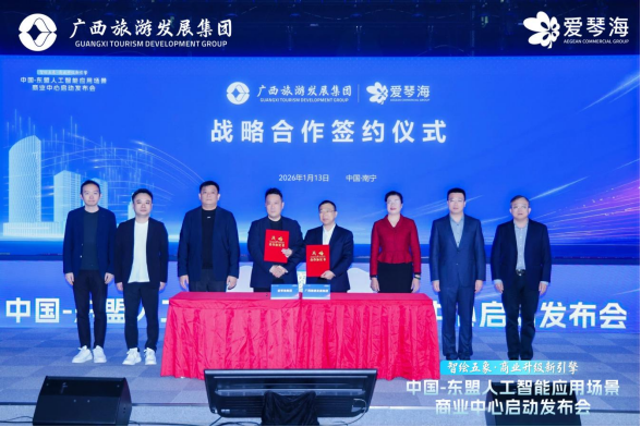 1月13日,广旅集团与爱琴海集团联合举办的中国—东盟人工智能应用场景商业中心启动发布会在广西规划馆AI展演中心举行。
