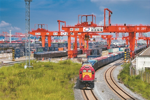 近日,一列铁海联运班列从钦州铁路集装箱中心站缓缓开出。广西云-广西日报记者周军/摄
