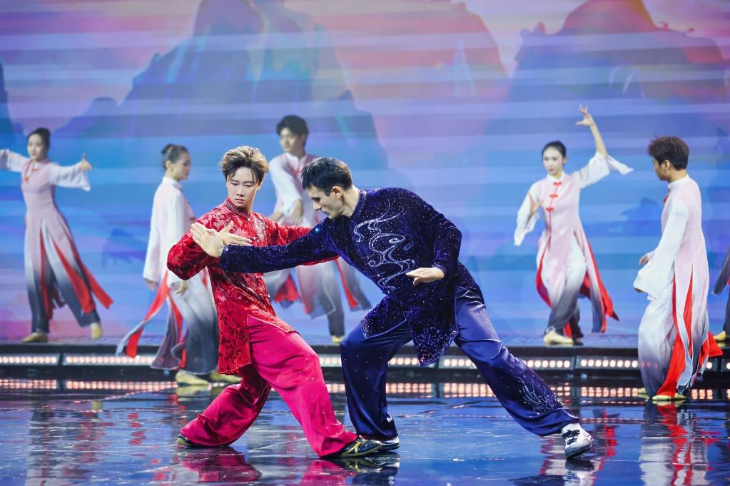 巴西武术爱好者莫小龙与跨国春晚再度相逢,与广西运动员唐陈鲲共展太极之姿。他们以身体为笔墨,缓缓推手、转身。“你中有我、我中有你”,既生动诠释了太极哲学,也形象体现了文明交融。