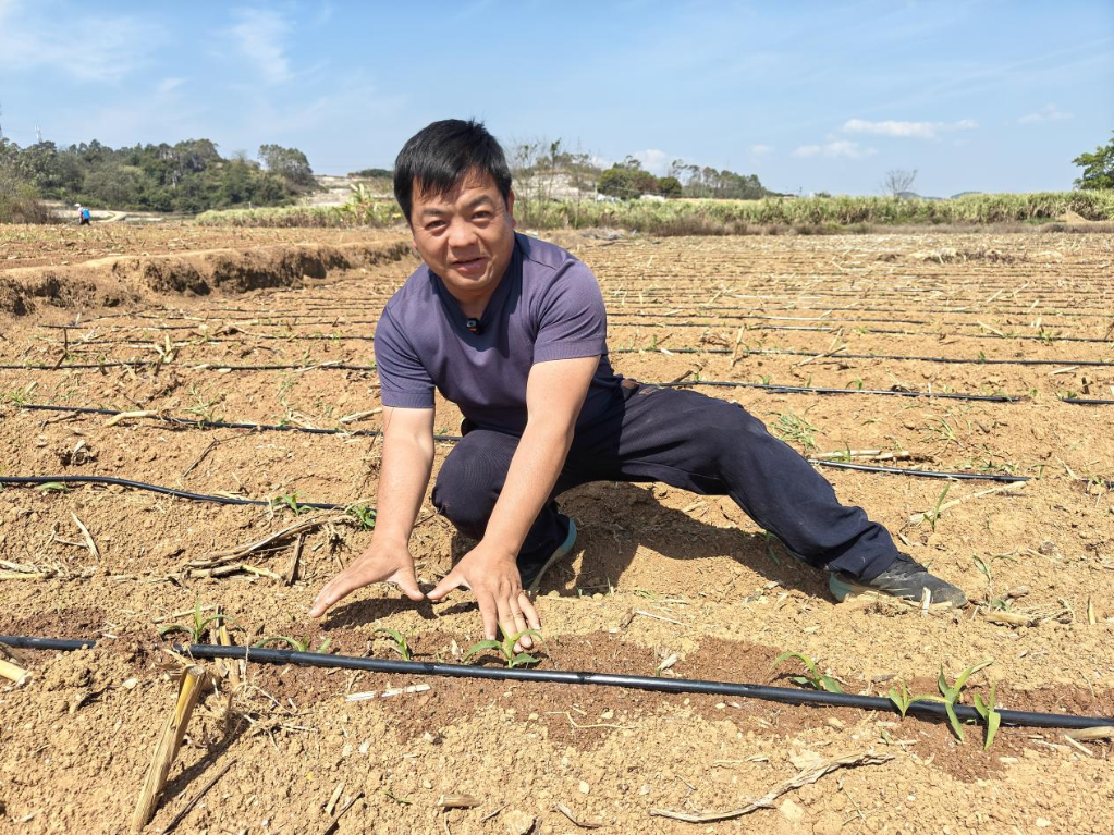 “这片地刚种下去半个月,苗才刚冒头。别看现在苗小,这套滴灌系统已经铺好了,等需要水肥的时候,开关一拧就能精准滴灌。”陈光华说。