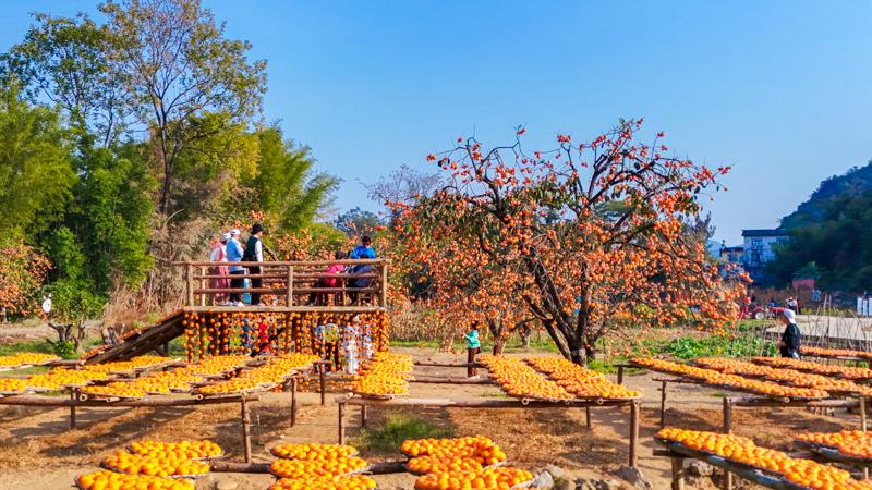 作者:陈燕 李茂香 素材来源:恭城瑶族自治县融媒中心 封面图: 微博文案:【广西恭城#甜蜜“柿”业喜丰收#】初冬时节,广西桂林市恭城瑶族自治县万亩柿林硕果累累,成熟的月柿如同一串串“红灯笼”挂满枝头,家家户户屋顶上晾晒着流心柿饼,在冬日阳光地照耀下,构成一幅暖意融融的金色丰收画卷。 详细>>
